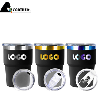 Grabado Vaso de 10 oz Unik Vaso negro y dorado Logotipo personalizado Taza de acero inoxidable Taza de café aislada Vaso de doble pared
